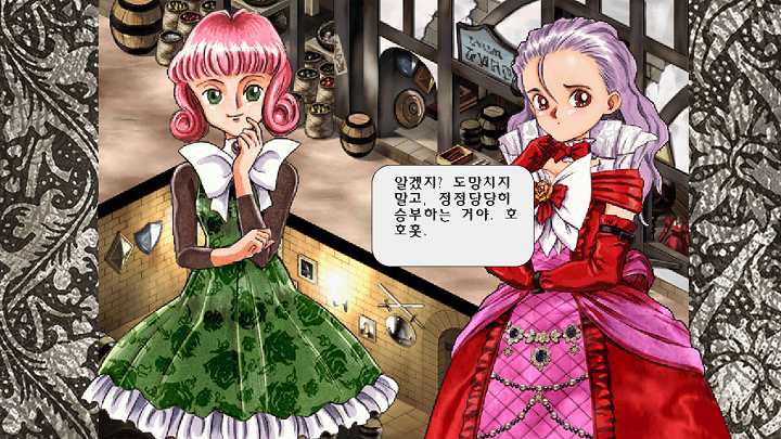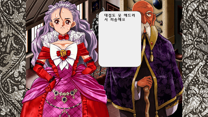 여기에 더해서 스샷을 찍어놓진 않았지만 도트가 깨지는 장면도 상당하고, 선택지가 한 말풍선에 다 표시가 되지 않는 경우도 발생하며 한글과 한자가 섞여 나오기도 한다.